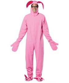 This A Christmas Story Bunny Suit is inspired by the hilarious pink bunny suit Ralphie is forced to wear in the classic family film A Christmas Story. These pink bunny costumes are adult-sized footy pajamas, complete with bunny footies. Check out our other costumes inspired by A Christmas Story and make it a group costume this year! 1 size fits most.